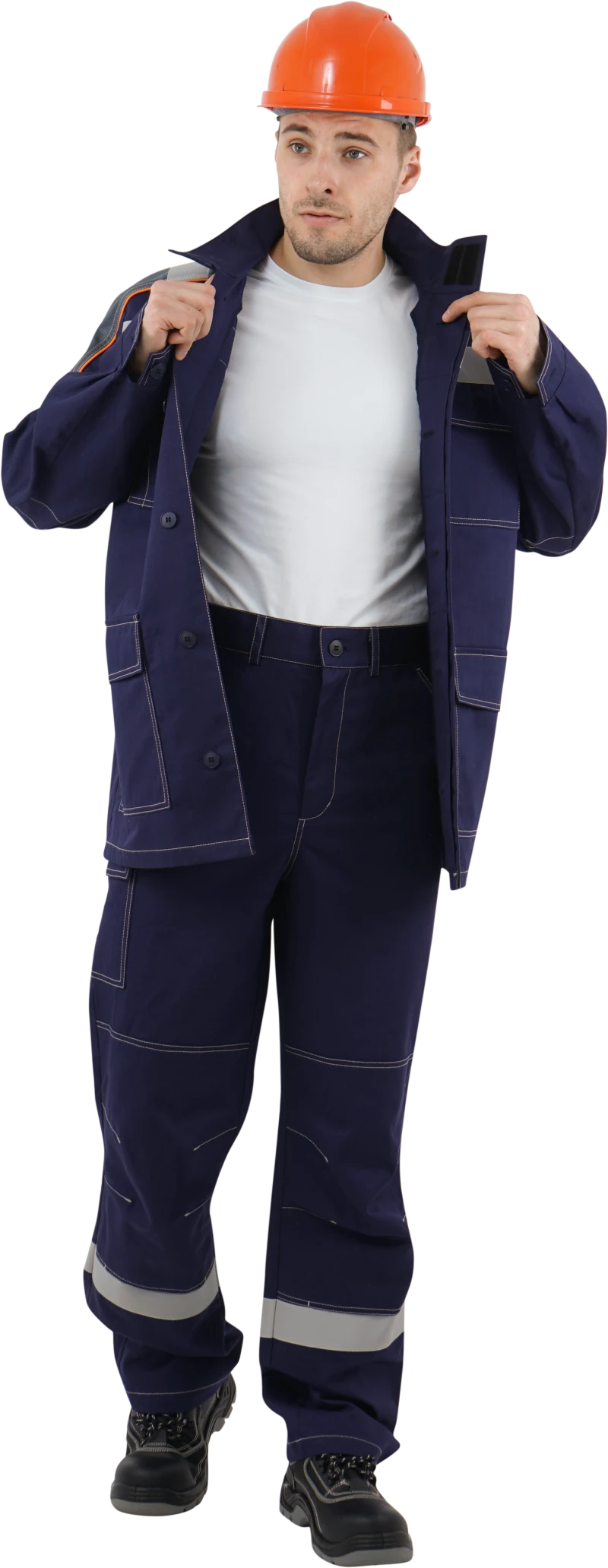 В костюме используется огнестойкая световозвращающая полоса шириной 50 мм. Огнестойкие нитки Nomex.