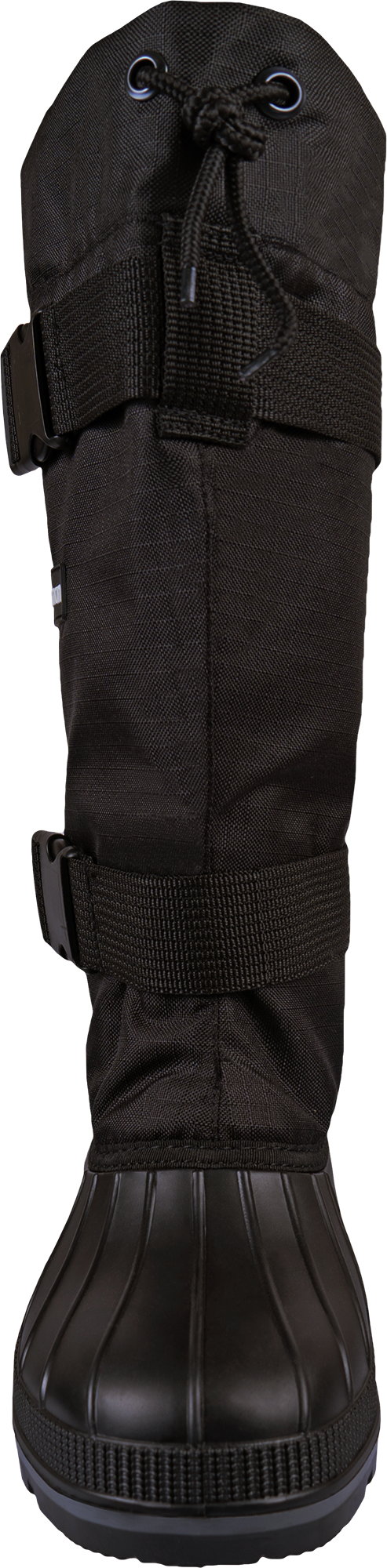 Практичная удобная модель обуви для зимней охоты. Верх: водоотталкивающая ткань с полиуретановой пропиткой, придающей изделию дополнительную прочность и износоустойчивость. Галоша: термоэластопласт (ТЭП) - выполнена методом трехкомпонентного литья с улучшенными теплоизоляционными и амортизирующими характеристиками.Чулок: выполнен из мягкого меха с использованием натуральной шерсти (не менее 50%), дублированного плотным фольгированным полотном с натуральными волокнами льна, поэтому отлично сохраняет тепло и поддерживает комфортный температурный режим даже при сильных морозах. Кроме того, пяточная часть вкладыша дополнительно усилена вставкой из винитола.Особенности: На подошве расположены металлические шипы для препятствия скольжению, а на задней части галоши предусмотрена шпора для удобства снятия. Благодаря прочным и удобным карабинам бахилы удобно, плотно и быстро фиксируются на ноге.Цвет: черныйВысота : 35 см.Рабочая температура: - 30СРазмерный ряд: с 41 по 48ТУ 2590-001-415-98-788-2009Т