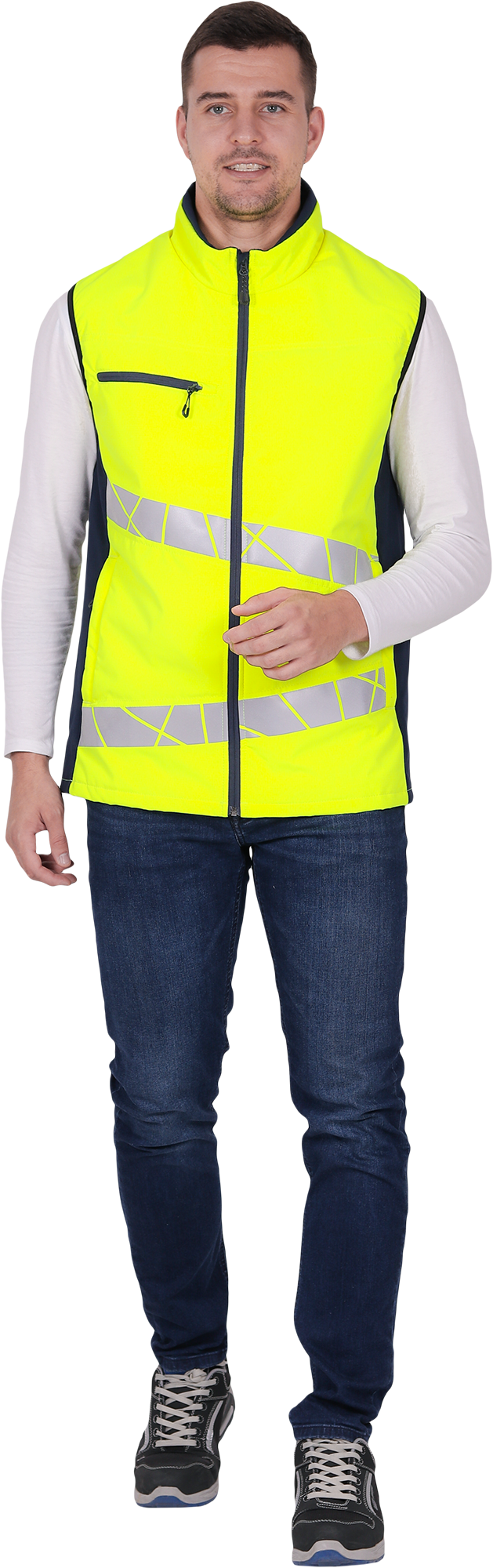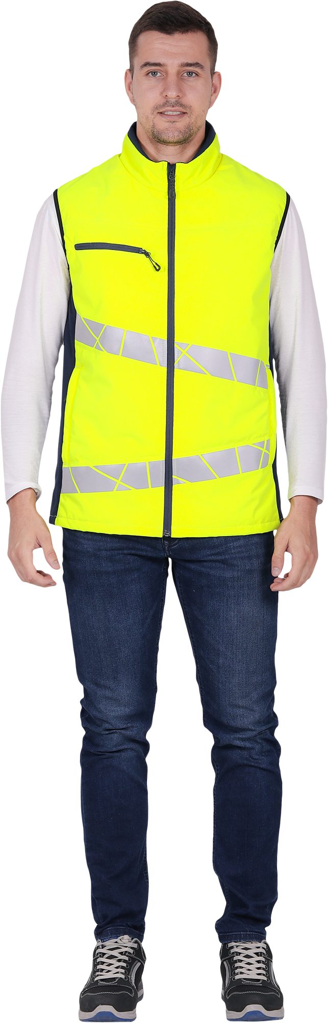 • две охватывающие термоклеевые световозвращающие полосы шириной 50 мм по торсу
