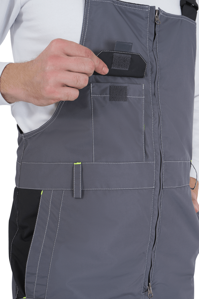 Полукомбинезон мужской ЭДВАНС от пониженных температур воздуха и ветра, механических воздействий и ОПЗ, серый/темно-серый/черный