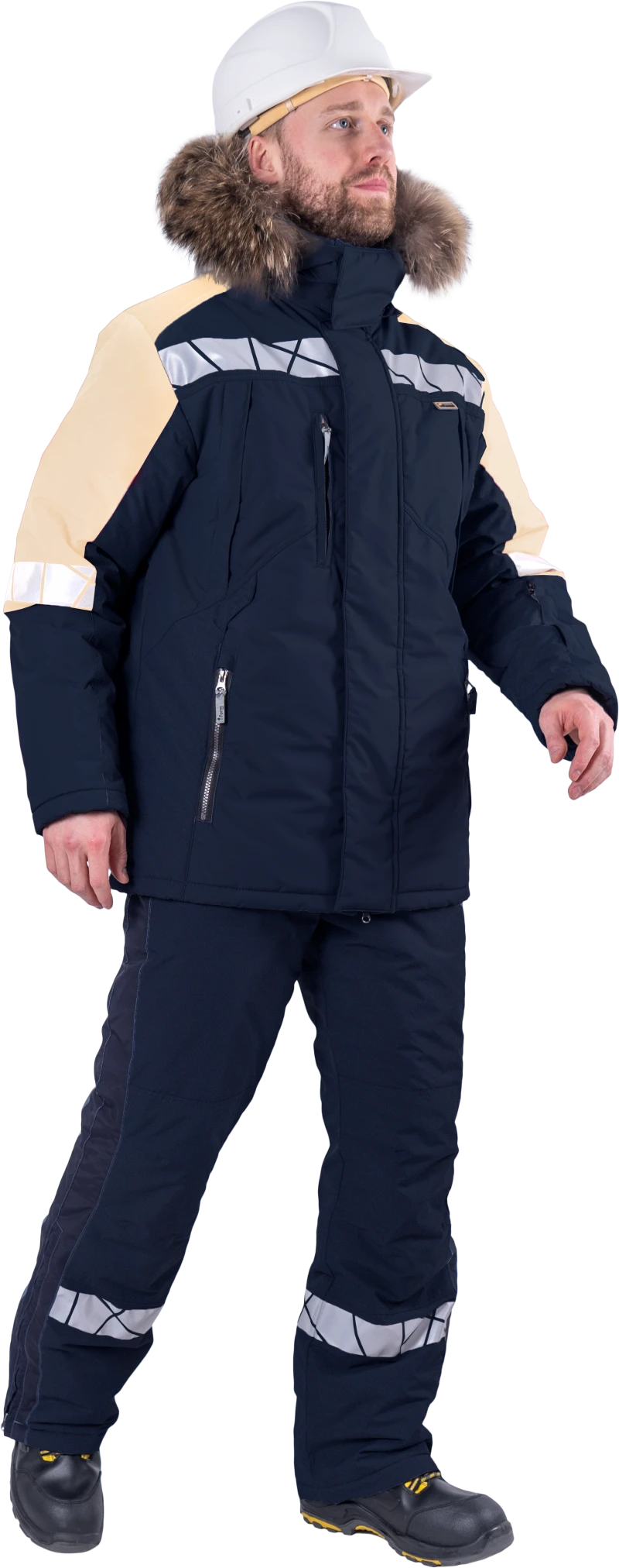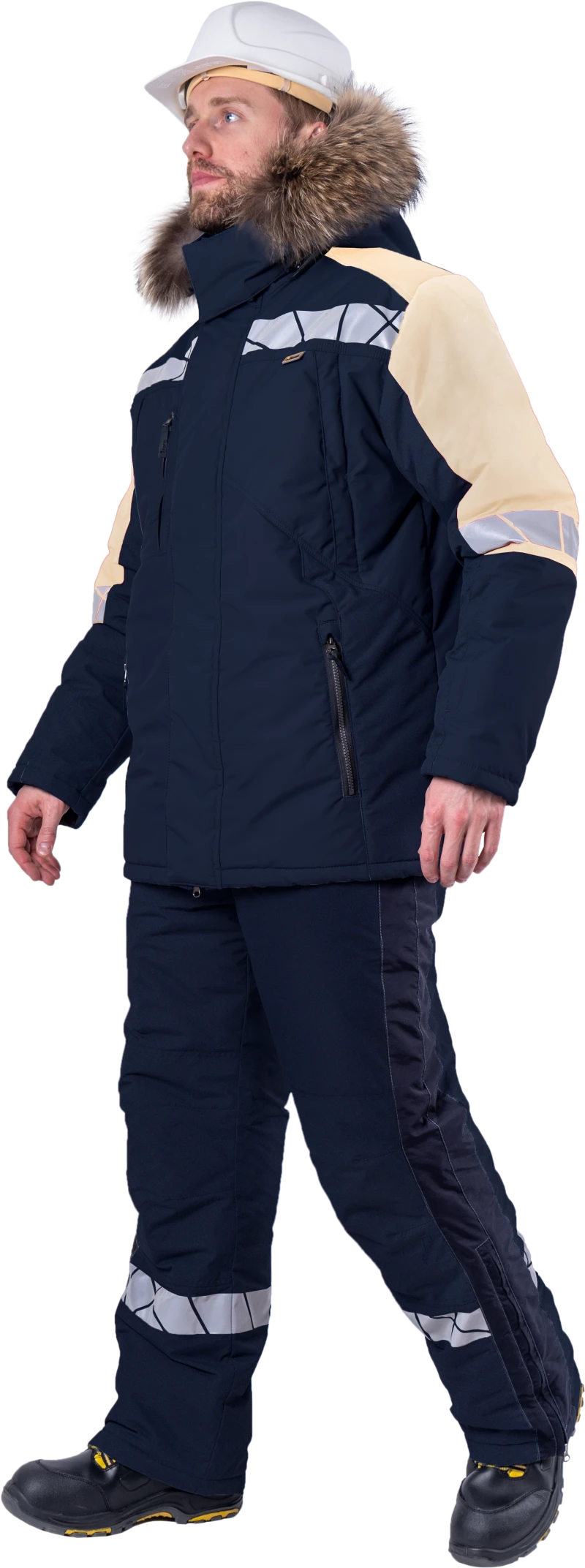 Куртка мужская ХАЙ-ТЕК SAFETY от пониженных температур воздуха и ветра, механических воздействий и ОПЗ, синий/бежевый