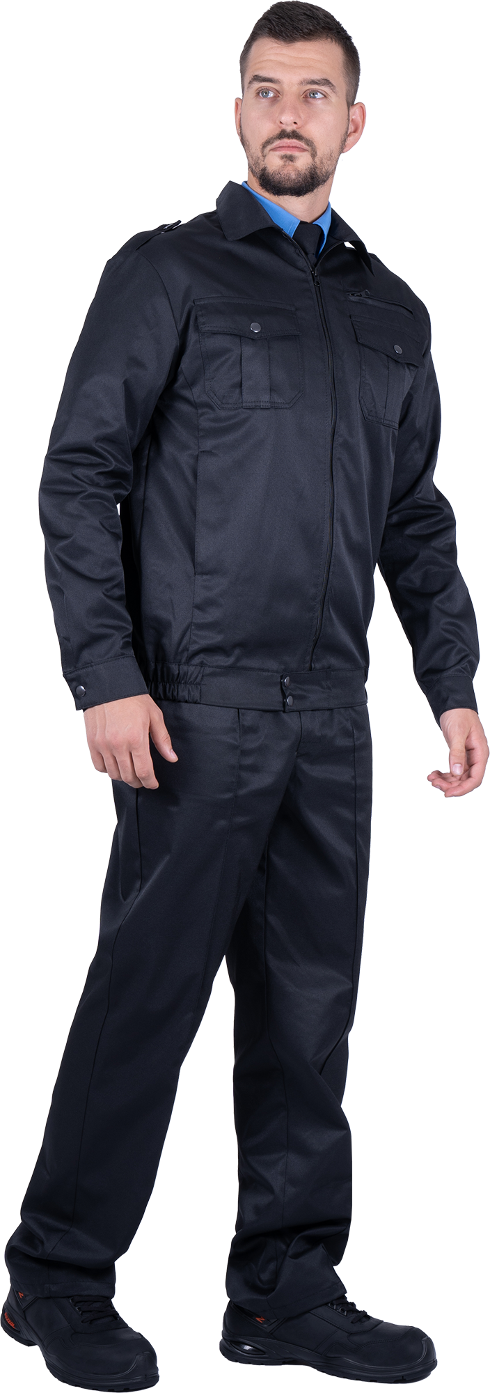 Костюм мужской ОХРАНА от механических воздействий и ОПЗ (куртка, брюки), черный