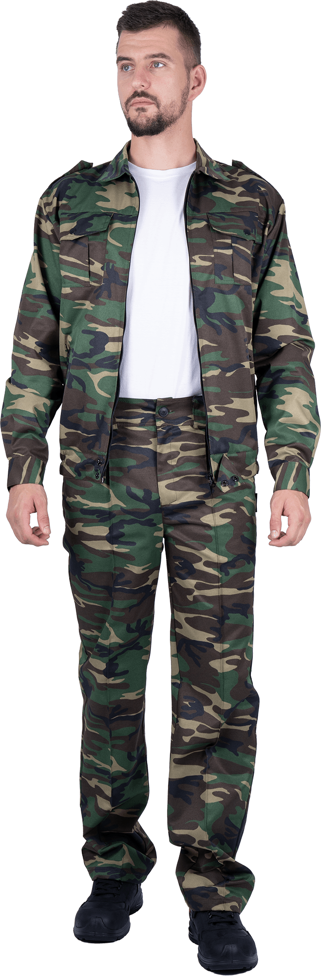 Костюм состоит из куртки и брюк.