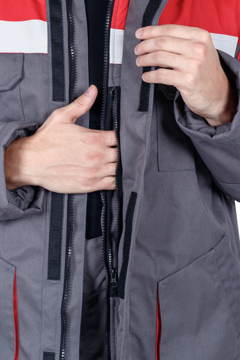 • Прямой силуэт, с центральной застёжкой на двухзамковую молнию с внешней и внутренней ветрозащитной планкой;
