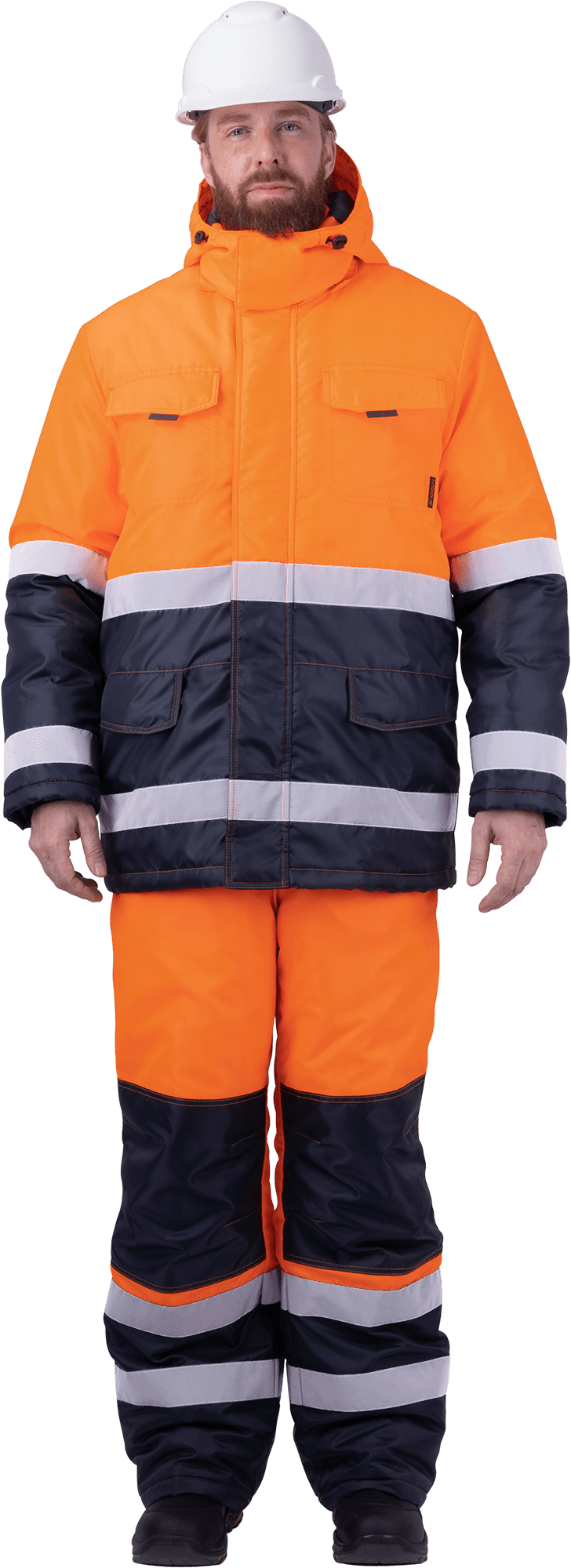 Костюм БРАЙТ зимний, Со - 3-й класс защиты, Тнв - 2-й класс защиты, флуоресцентный оранжевый-синий