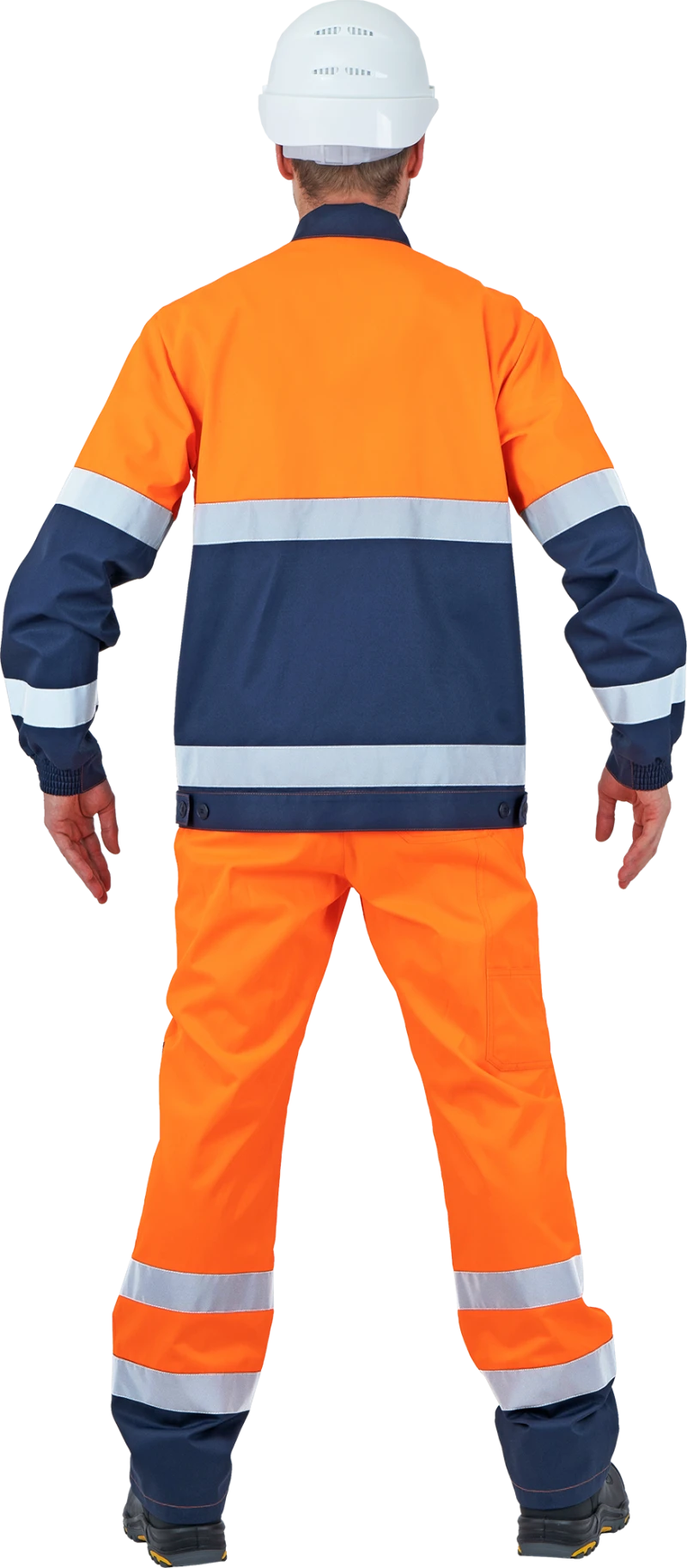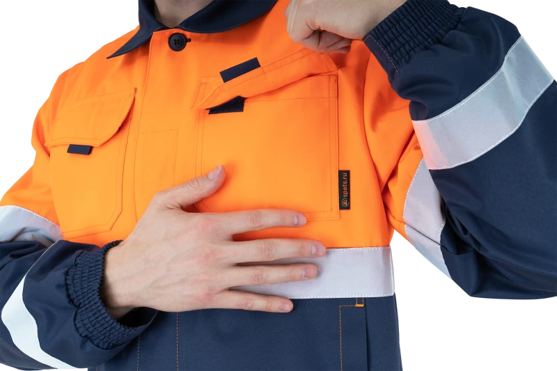Костюм мужской БРАЙТ сигнальный, от механических воздействий и ОПЗ (куртка, полукомбинезон), флуоресцентный оранжевый/синий