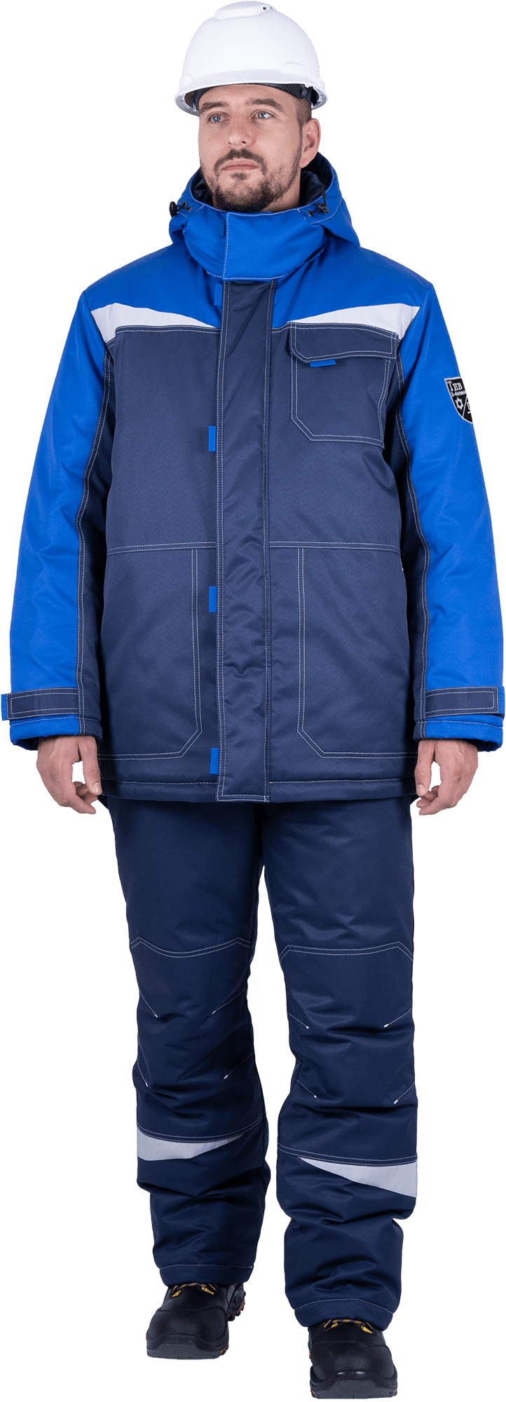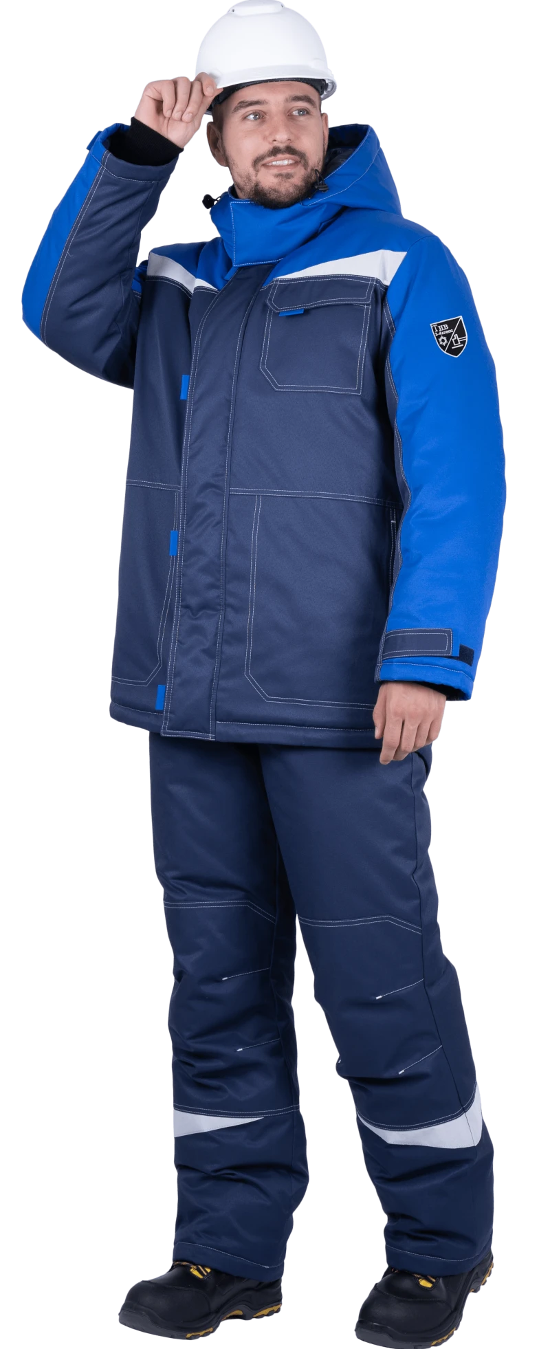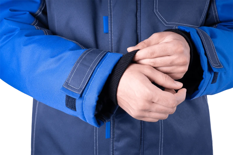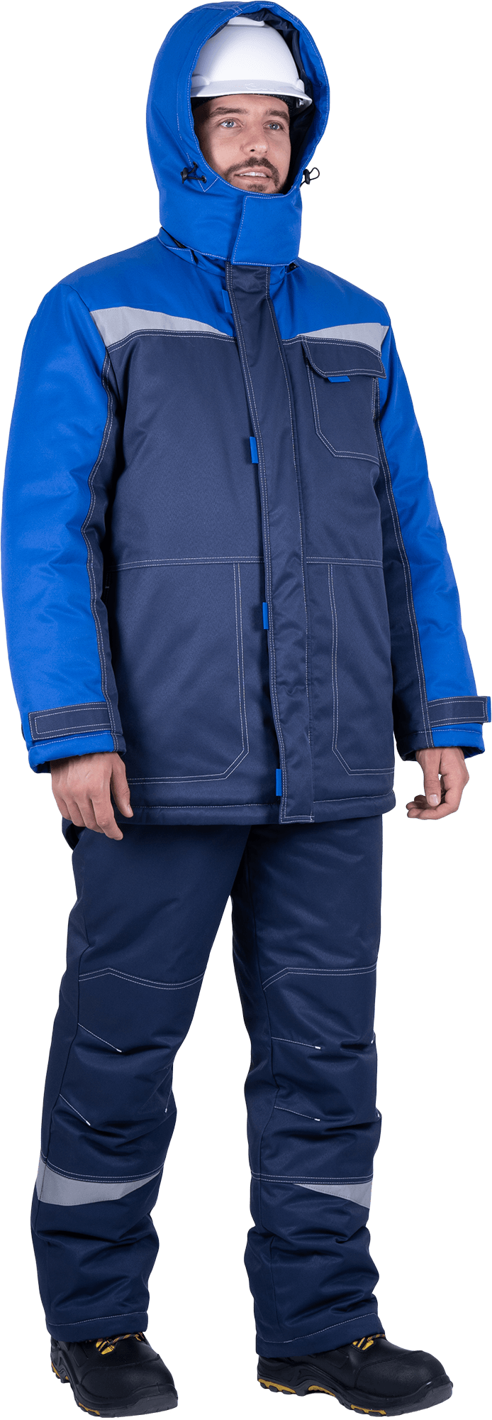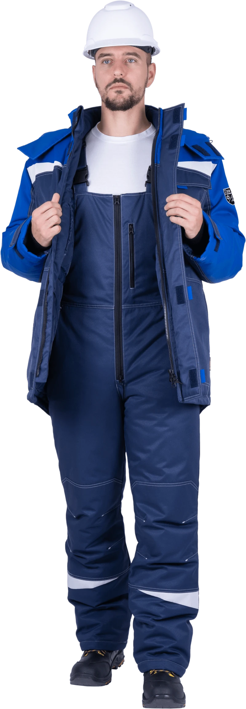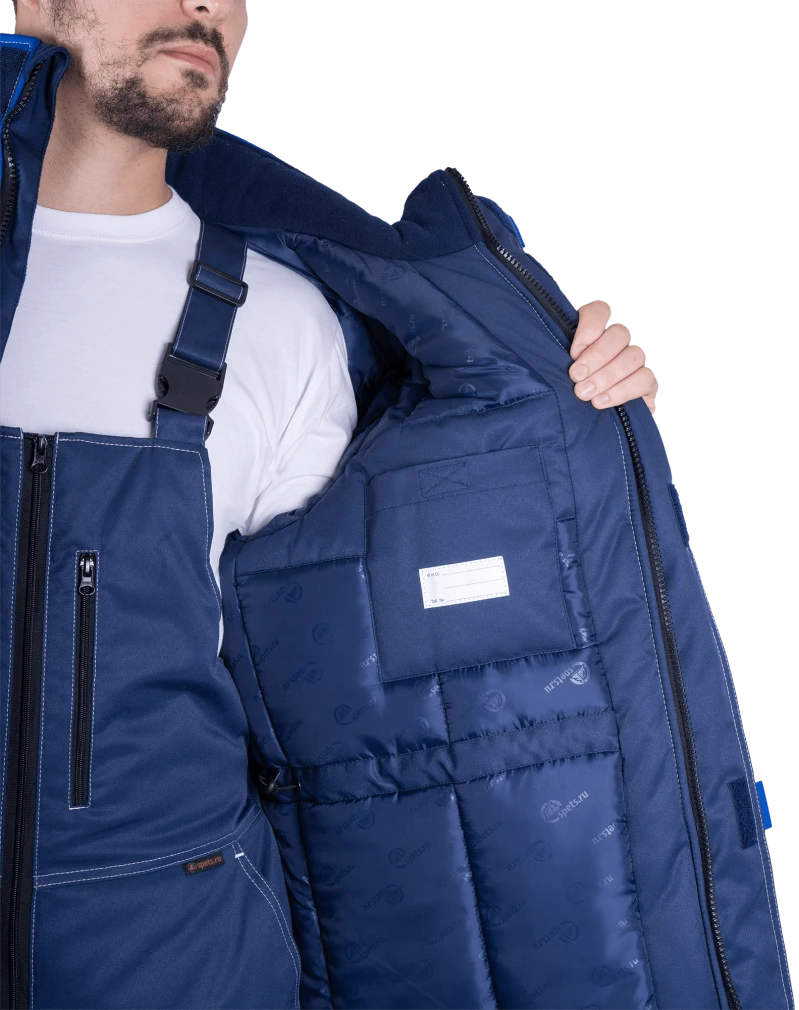 Костюм мужской КМ-10 ЛЮКС от пониженных температур воздуха и ветра, механических воздействий и ОПЗ (куртка, полукомбинезон), синий/василек