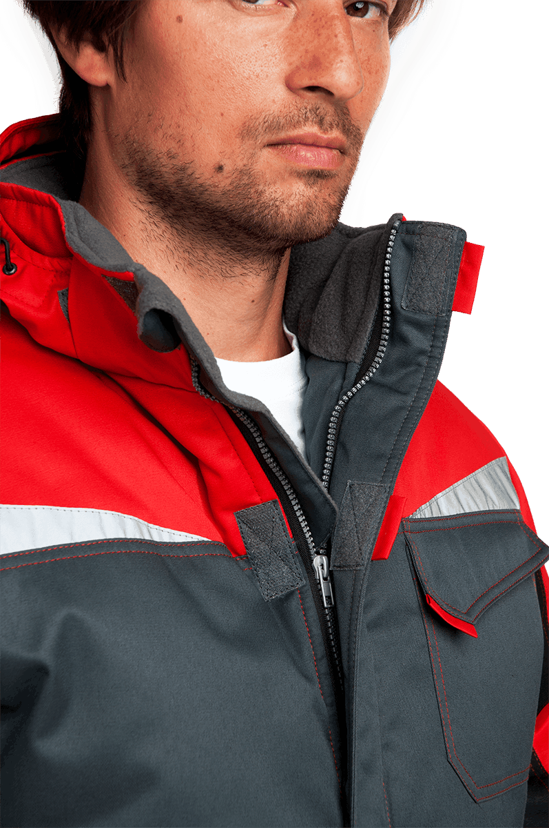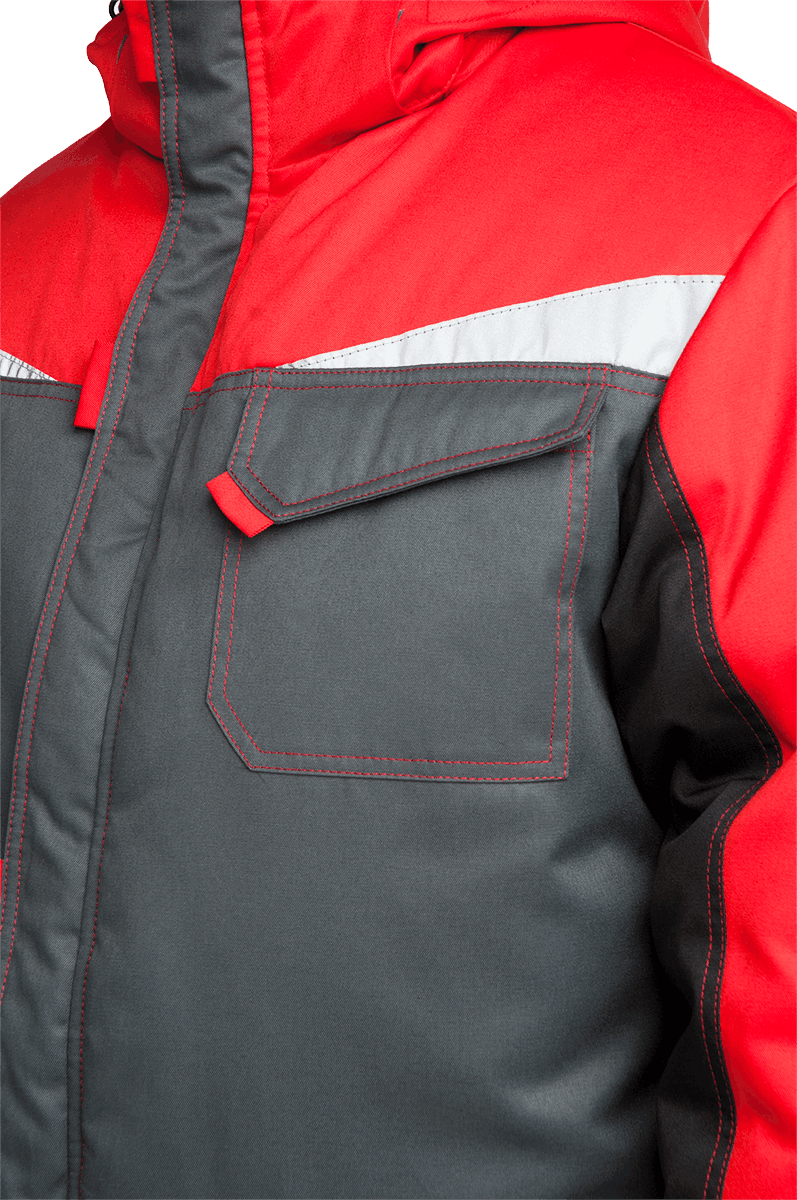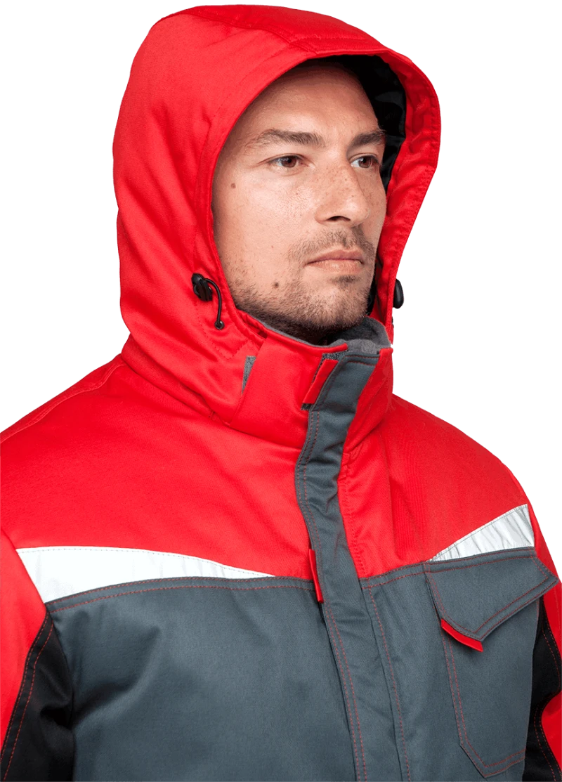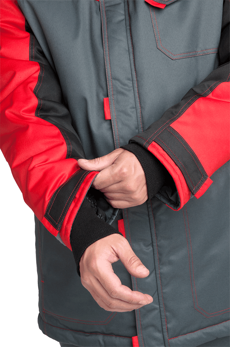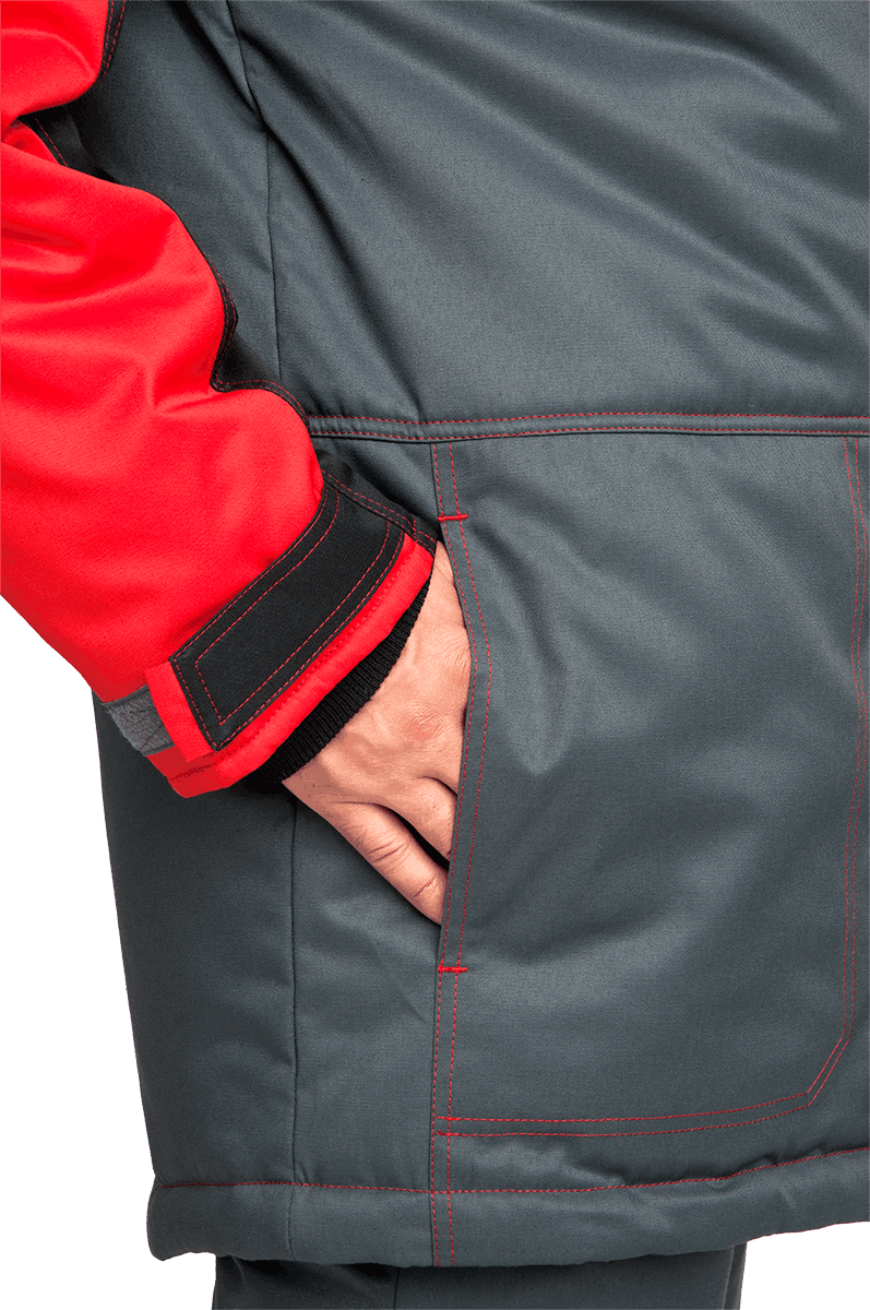 Костюм мужской КМ-10 ЛЮКС от пониженных температур воздуха, механических воздействий и ОПЗ, серый/чёрный/красный
