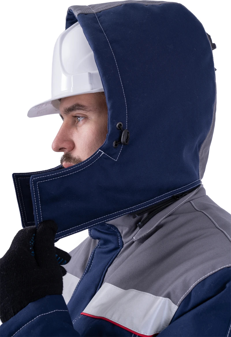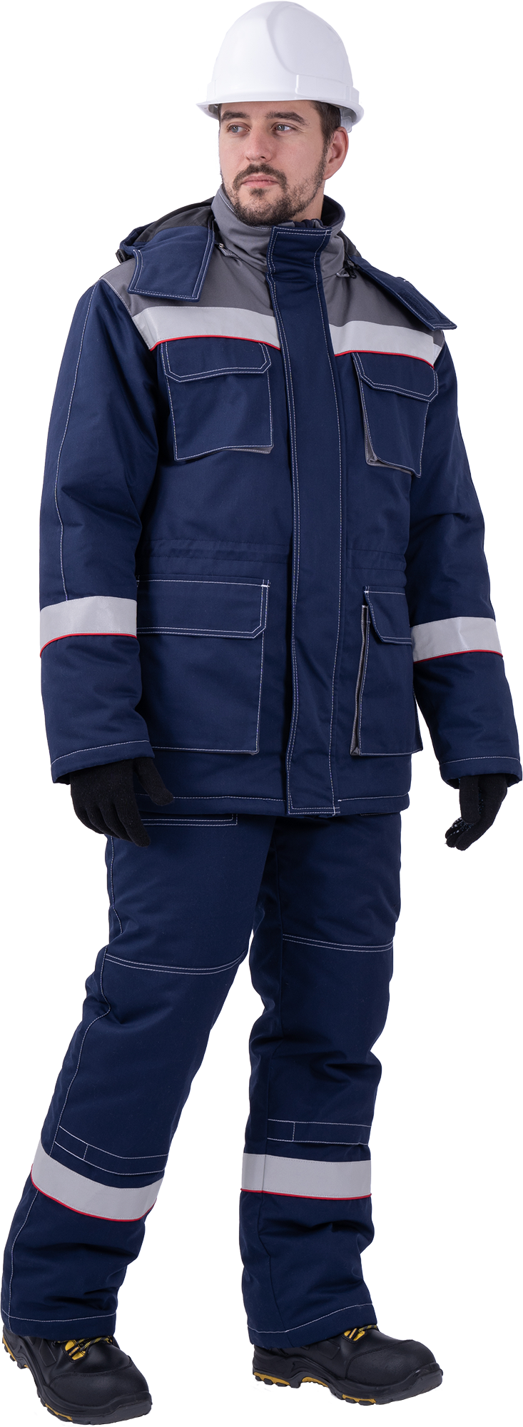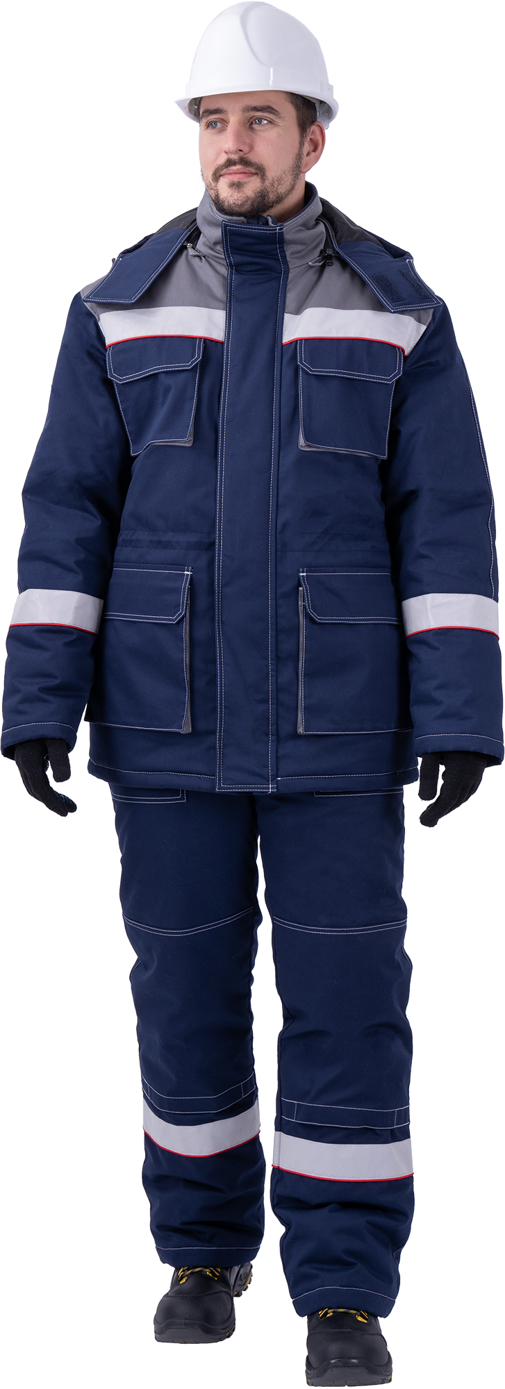 Костюм мужской НАДЫМ от пониженных температур воздуха и ветра, механических воздействий и ОПЗ (куртка, полукомбинезон), темно-синий/серый