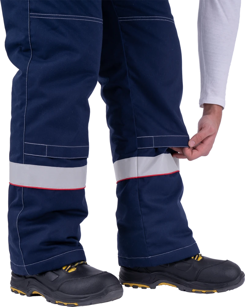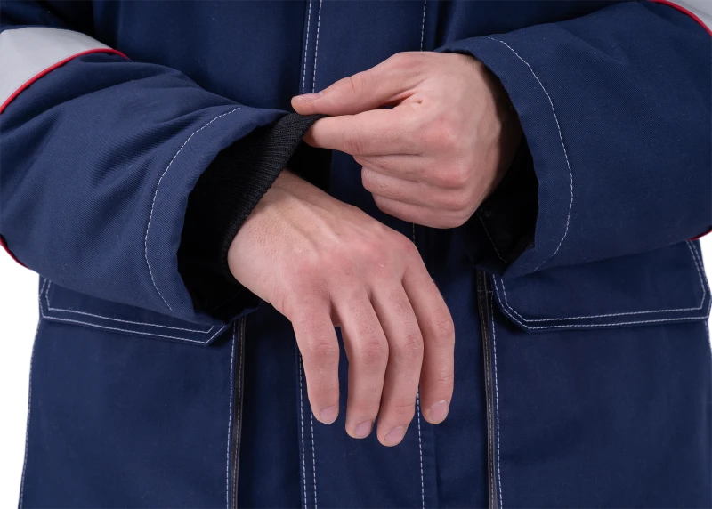 В костюме используются ветрозащитная ткань и световозвращающая полоса (СВП) 50 мм.