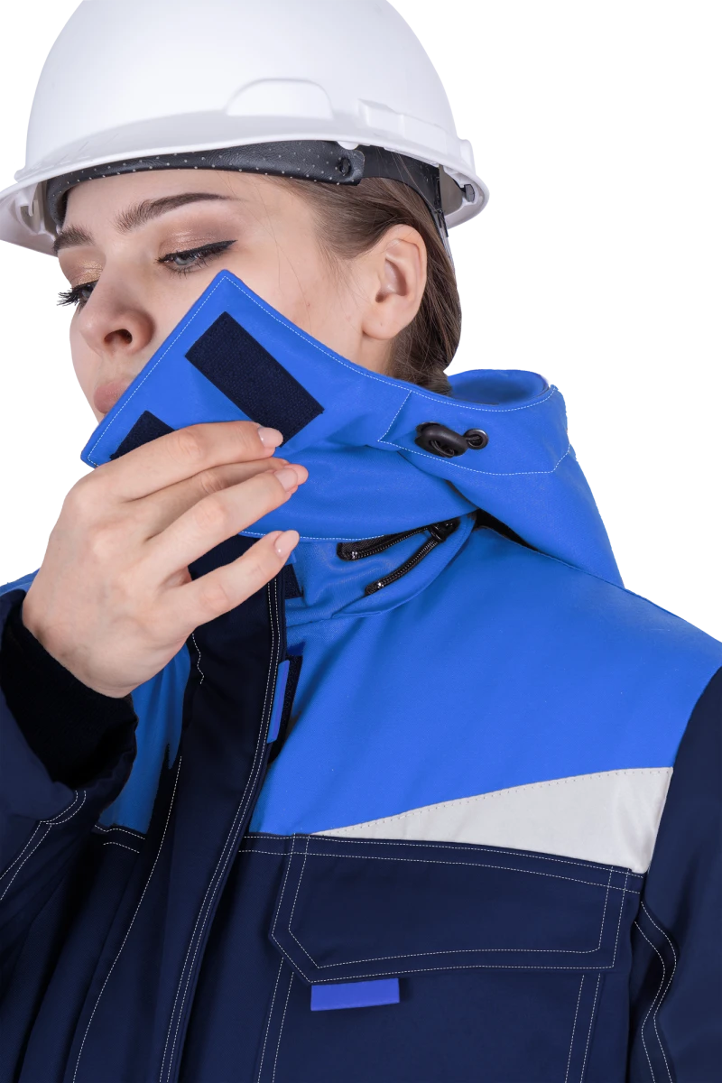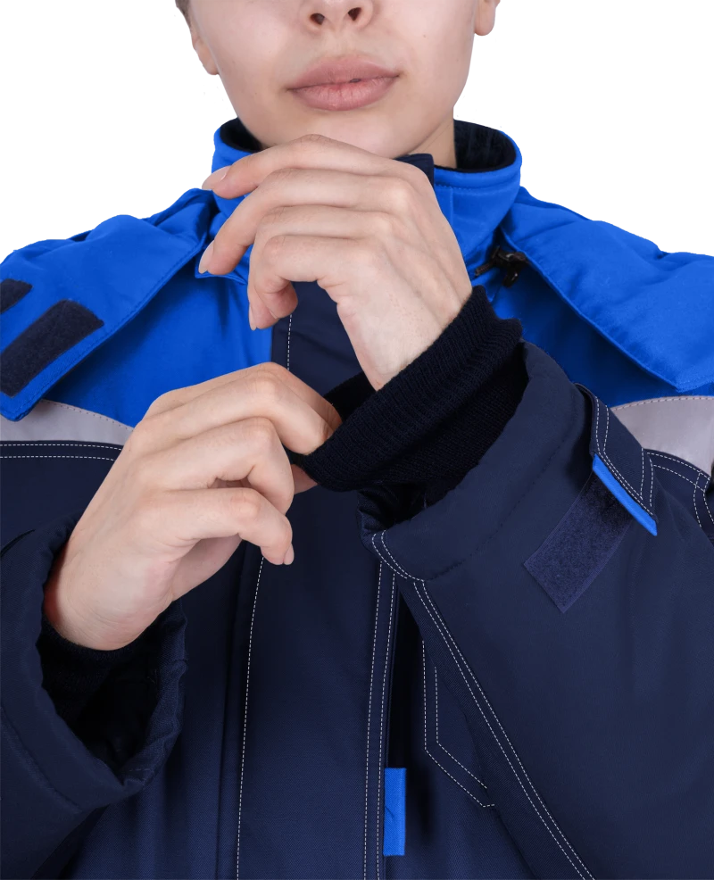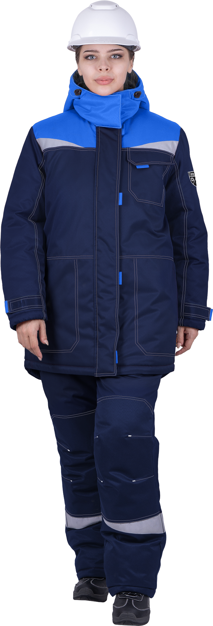 Костюм женский КМ-10 ЛЮКС от пониженных температур воздуха и ветра, механических воздействий и ОПЗ (куртка, брюки), синий/василек