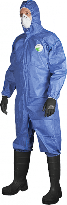 Комбинезон, изготовленный из полипропиленового четырехслойного SMMS материала, обеспечивает повышенную защиту.