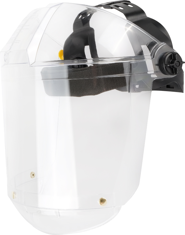 • наголовное крепление регулируется по высоте ношения (теменная часть) и размеру головы (затылочная часть). Регулировки по размеру позволяют точно подгонять и надежно фиксировать щиток на голове пользователя, исключая вероятность спадывания, особенно при использовании с головными уборами;