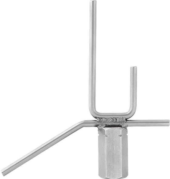 Наконечник позволяет легко установить карабин или устройство «С10Е» и освободить их от ШИПа. Конструкция наконечника позволяет не только доставить карабин и устройство «С10Е» к месту крепления, но и манипулировать тросами, веревками инструментами и прочими вещами (подтянуть к себе, оттолкнуть, подвинуть и т.д.).