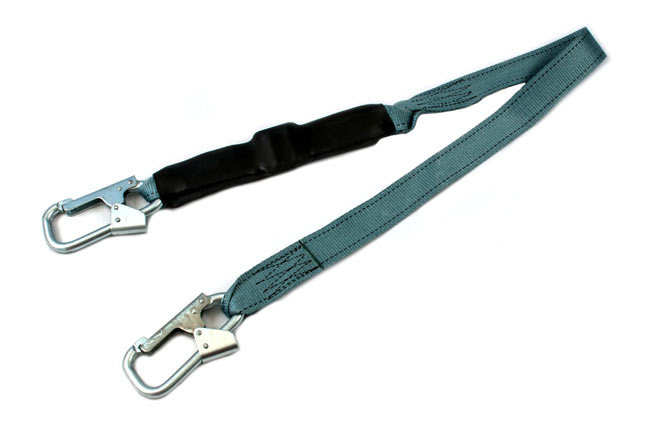 • Строп ленточный с амортизатором и двумя карабинами используется как средство индивидуальной защиты от падения с высоты, может применяться как отдельная соединительная деталь, узел или компонент в системе с привязями и с анкерной точкой.